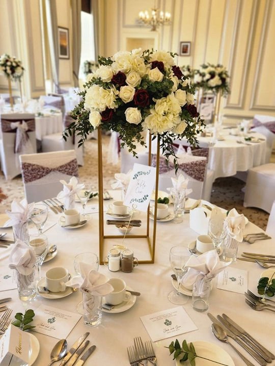 We will co-ordinate your centerpiece to match your room style. with so many different designs available we have a extensive range to fit all budgets.